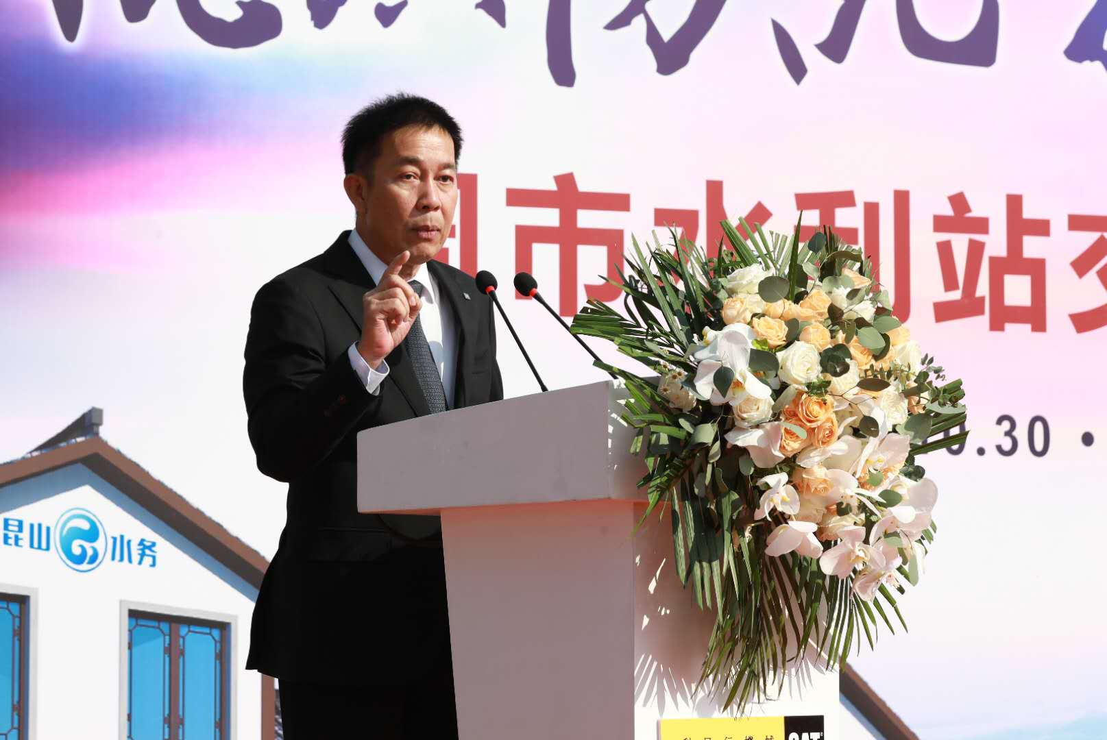 交機儀式上,利星行機械發動機事業部首席運營官王宏偉先生和卡特彼勒東南、西南及臺灣地區分銷總經理張文女士把代表10臺卡特彼勒發電機組的鑰匙交付給周市鎮人民政府副鎮長陳耀國先生和周市水利水務站站長顧軍先生,正式開啟合作之門,以卡特彼勒高性能的發電設備和利星行專業快捷的售后服務為周市鎮抗洪防汛保駕護航。