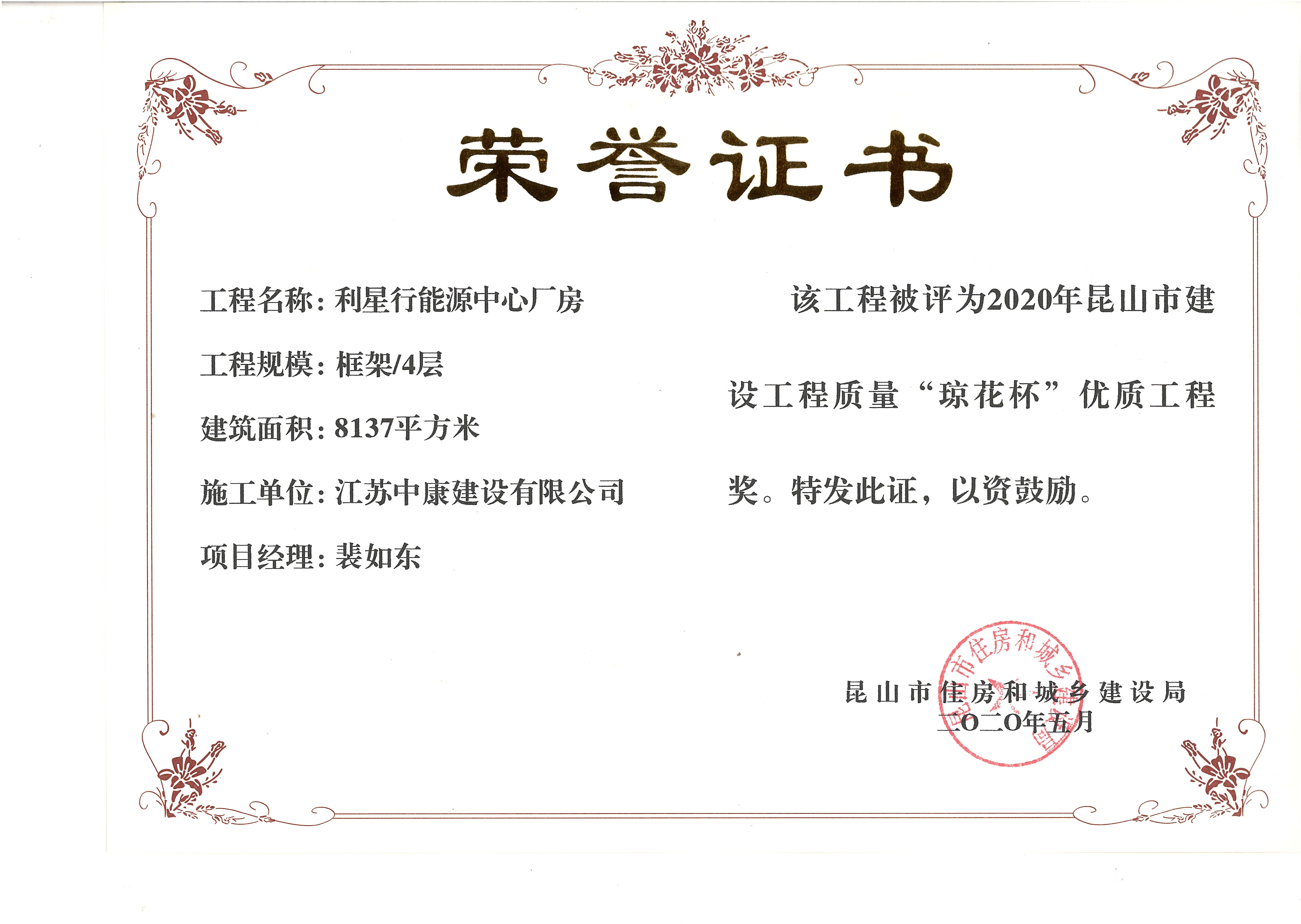 憑借優(yōu)秀的設(shè)計理念和建造品質(zhì),該項目由昆山市住建局評定為2020年昆山市建設(shè)工程質(zhì)量“瓊花杯”優(yōu)質(zhì)工程獎。
