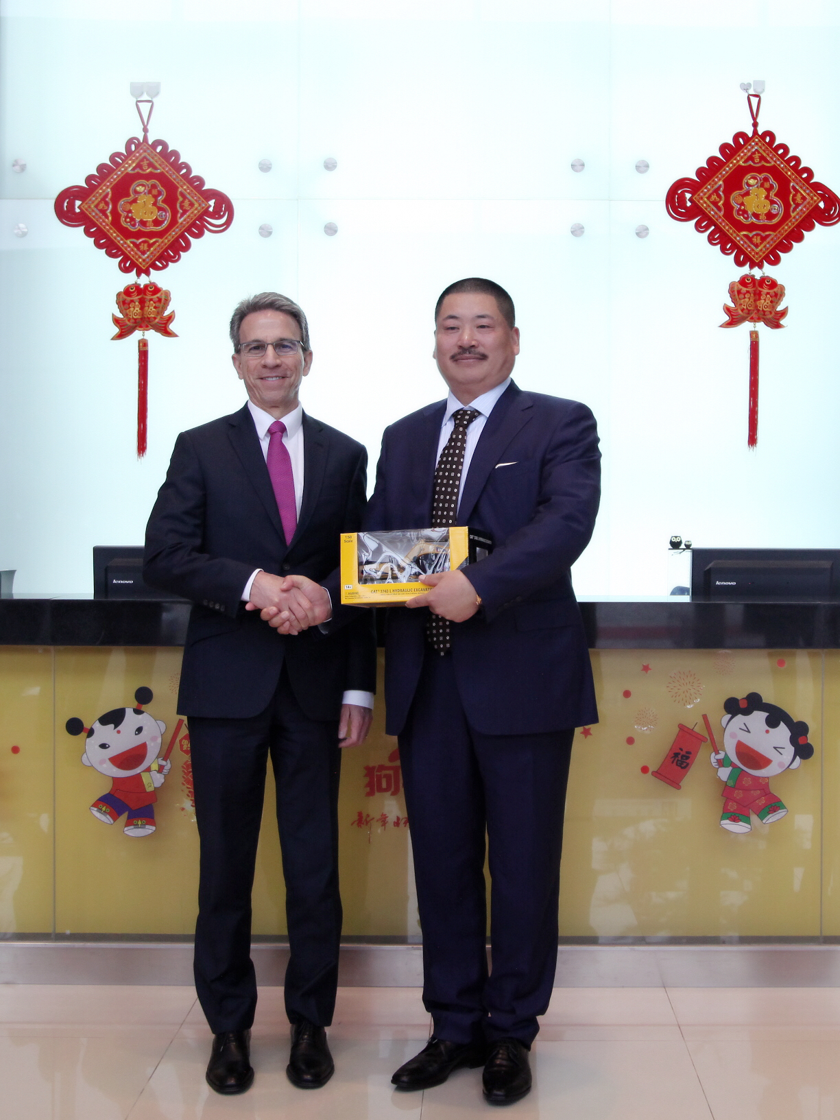 左:卡特彼勒首席執行官安博駿;右:客戶劉飛