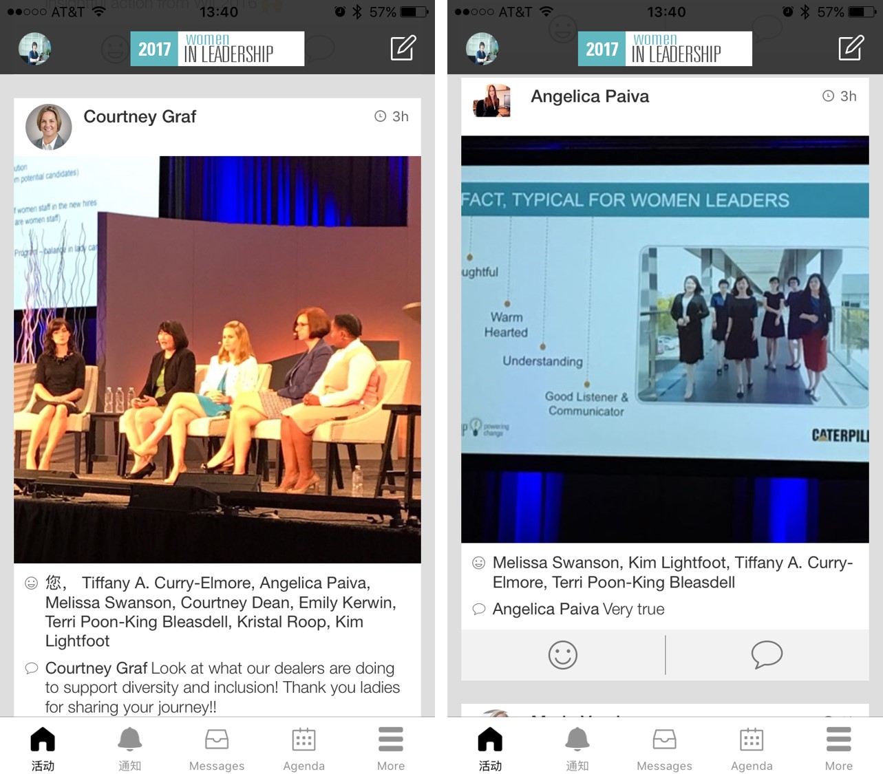 本次大會主題為 “推動改變”,以訪談和嘉賓主題演講的形式,從客戶的角度、思想的角度、科技的角度、社交網絡的角度、文化適應以及宣傳的角度向與會者傳達和分享了不同的企業(yè)、行業(yè),甚至不同性別的領導者在各自所處的環(huán)境中推動女性領導力、實現多元化發(fā)展的成功經驗。而由卡特彼勒集團總裁Denise Johnson、受邀嘉賓以及卡特彼勒和幾家優(yōu)秀卡特代理商帶來的分享,更向與會者詮釋了堅持不懈、主動積極、付諸行動等精神在“推動改變”的過程中,如何發(fā)揮著巨大和積極的作用。女性領導力大會的舉辦目的之一是向與會的女性領導者提供更多提升管理和領導能力的機會,而本次大會的受邀嘉賓在與大家的分享過程中,包括如何建立合作伙伴關系、如何在團隊管理中建立信任、以及如何對需要幫助的群體“授之以漁而非授之以魚”等等,也讓參會者受益匪淺。