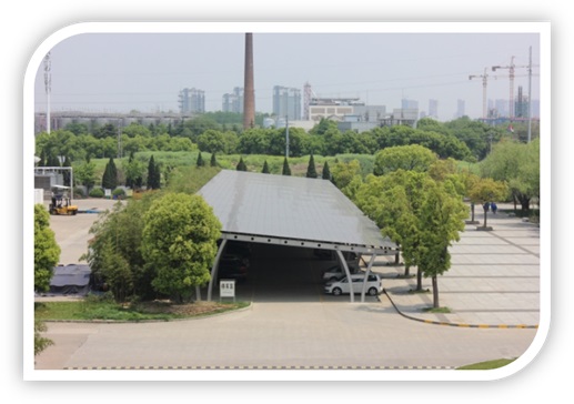 | 水泥房頂: 570個組件,2個逆變器,裝機容量65.55kW | 地面停車棚頂: 2520個組件,7個逆變器,裝機容量289.8kW |