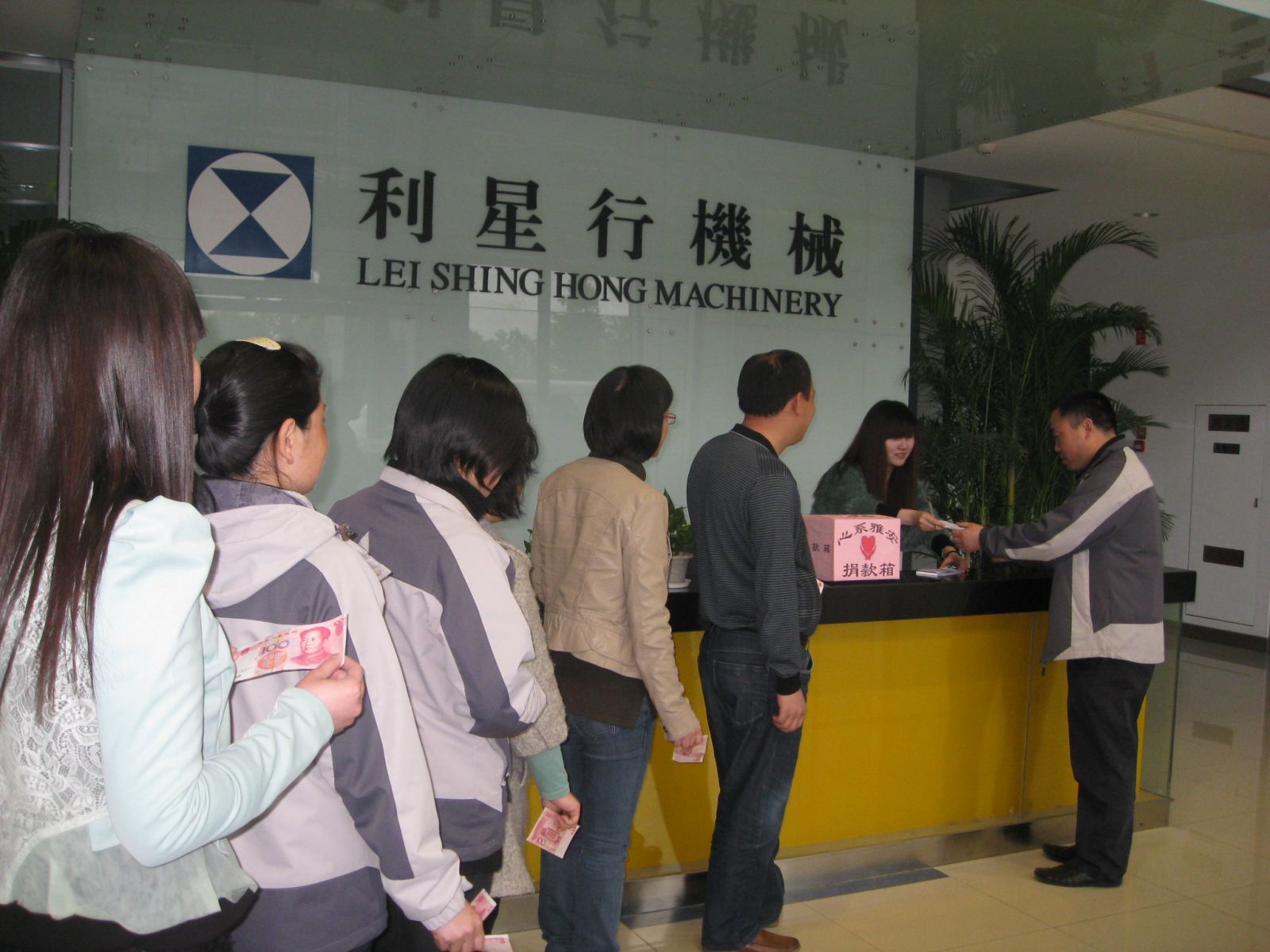 2013年4月22日,在人力資源部統一規劃的捐款獻愛心倡議之下,利星行機械集團(包括利星行機械、利星行融資、利星行物流)在昆山總部以及位于六省一市各個省際服務中心、分公司和服務點的員工積極響應,截止2013年4月26日下午15時,共籌集善款人民幣125,426.8元,利星行機械集團將通過卡特中國與卡特基金會名下的“贈與亞洲四川地震救災基金”合作,由“贈與亞洲基金”在國內嚴格挑選值得信賴的慈善機構,并以卡特彼勒的名義,將我們的捐款通過這家機構用于災區。通過這樣的合作,我們不僅可以同樣享受卡特彼勒基金會“贈與亞洲四川地震救災基金”承諾的10萬美元的捐款匹配,而且可以通過卡特基金會嚴格專業的合作伙伴評估程序,選擇到真正有信譽度的慈善合作機構。
