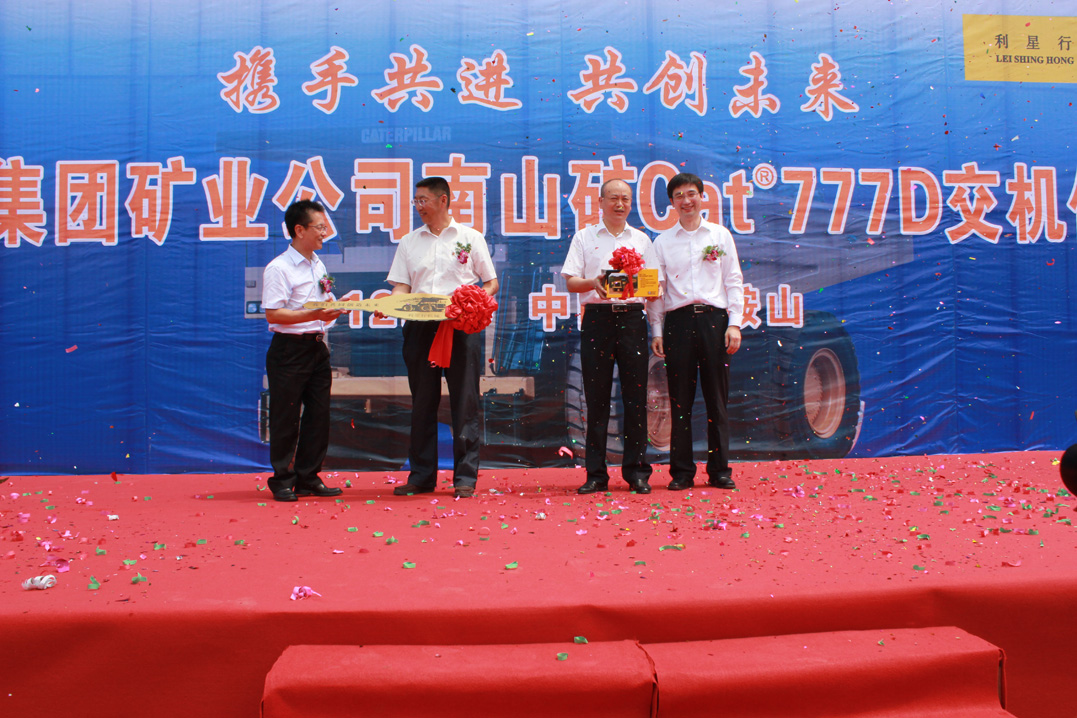2012年7月6日,卡特777D新機交接儀式在安徽省馬鞍山馬鋼集團(tuán)隆重舉行。卡特彼勒全球礦業(yè)大中華及韓國區(qū)副總裁蔡力先生協(xié)同卡特其他高層官員出席蒞臨;利星行機械首席執(zhí)行官傅耀生先生,機器事業(yè)部首席運營官文曉典先生及公司服務(wù)團(tuán)隊一同參加了此次活動。卡特及利星行與馬鋼礦業(yè)公司副總經(jīng)理賴永兵及其團(tuán)隊在此共襄盛行。